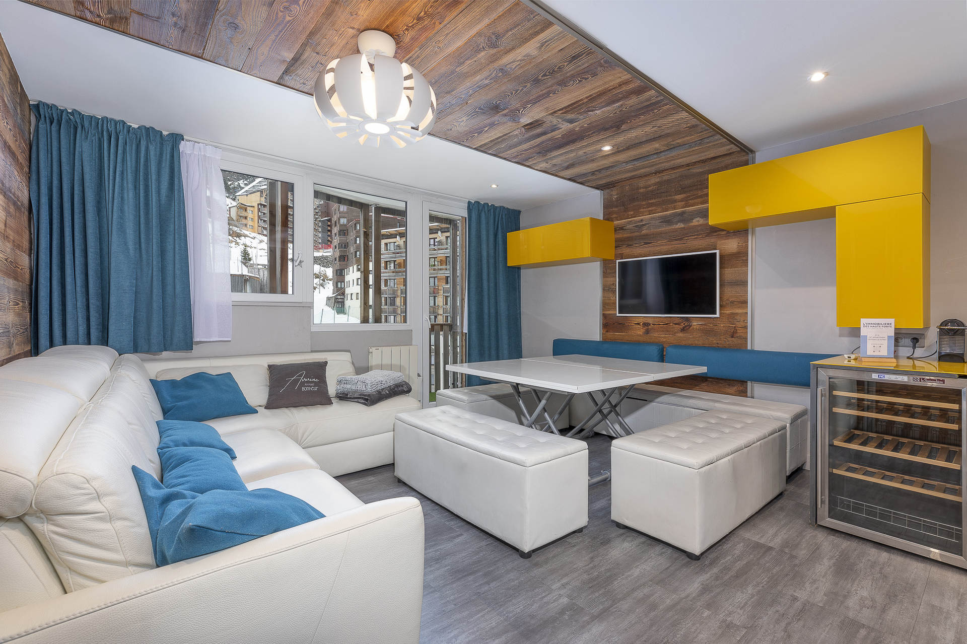 Located on the 7th floor of the Alpages 1 residence, this fully renovated 80 m² apartment can accommodate up to 10 guests and combines modern comfort with high-quality amenities. Its prime location, close to the resort centre, offers a peaceful yet convenient setting for an exceptional mountain holiday.