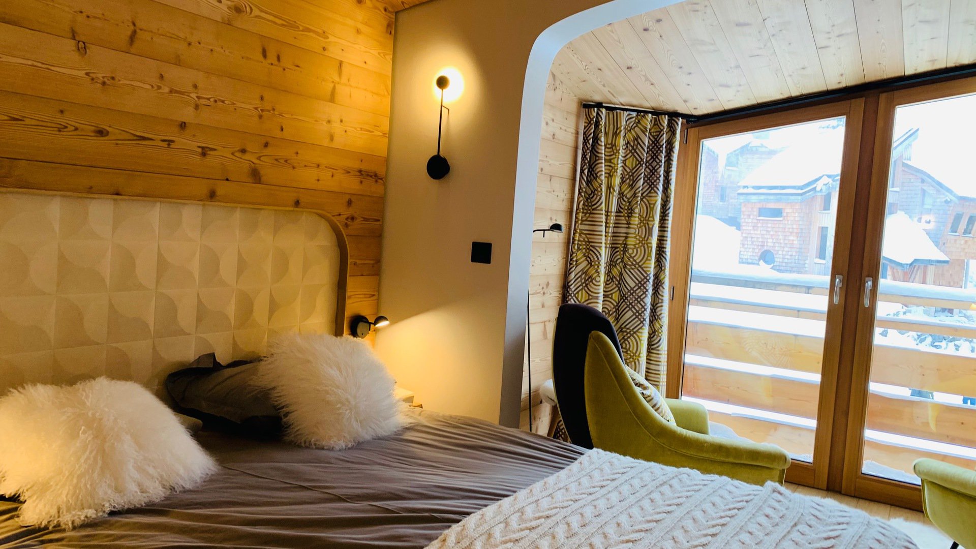 The bright, open-plan living room is designed for comfort, with multiple sofas perfect for relaxing by the fire. The chalet's colorful and harmonious décor enhances the sense of well-being. A fully equipped open kitchen (oven, refrigerator, dishwasher, professional Nespresso machine, wine fridge…) opens onto a friendly dining area. The large balcony is ideal for enjoying a coffee or an apéritif in the sun, overlooking the charm of the village.