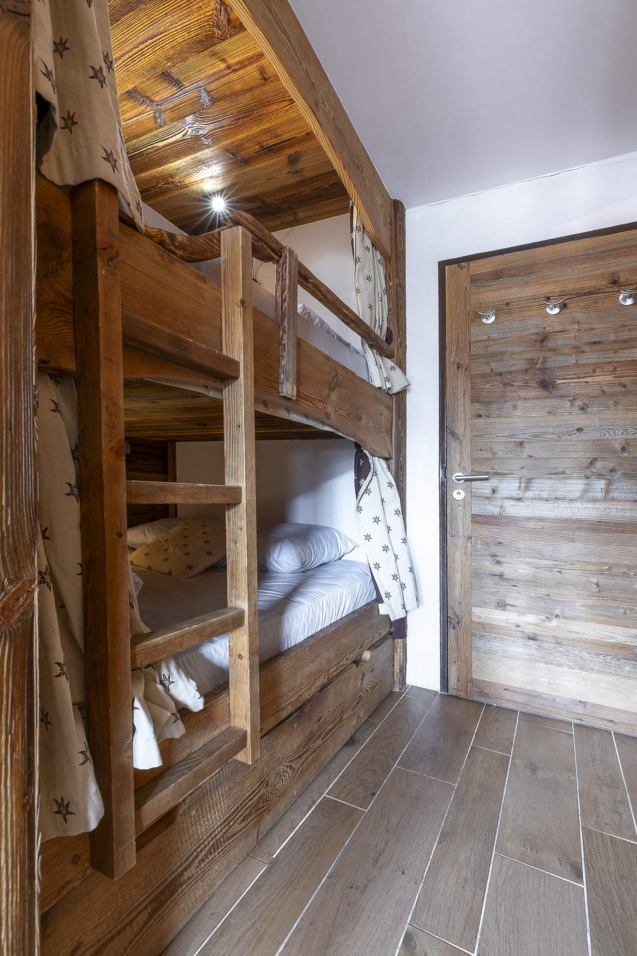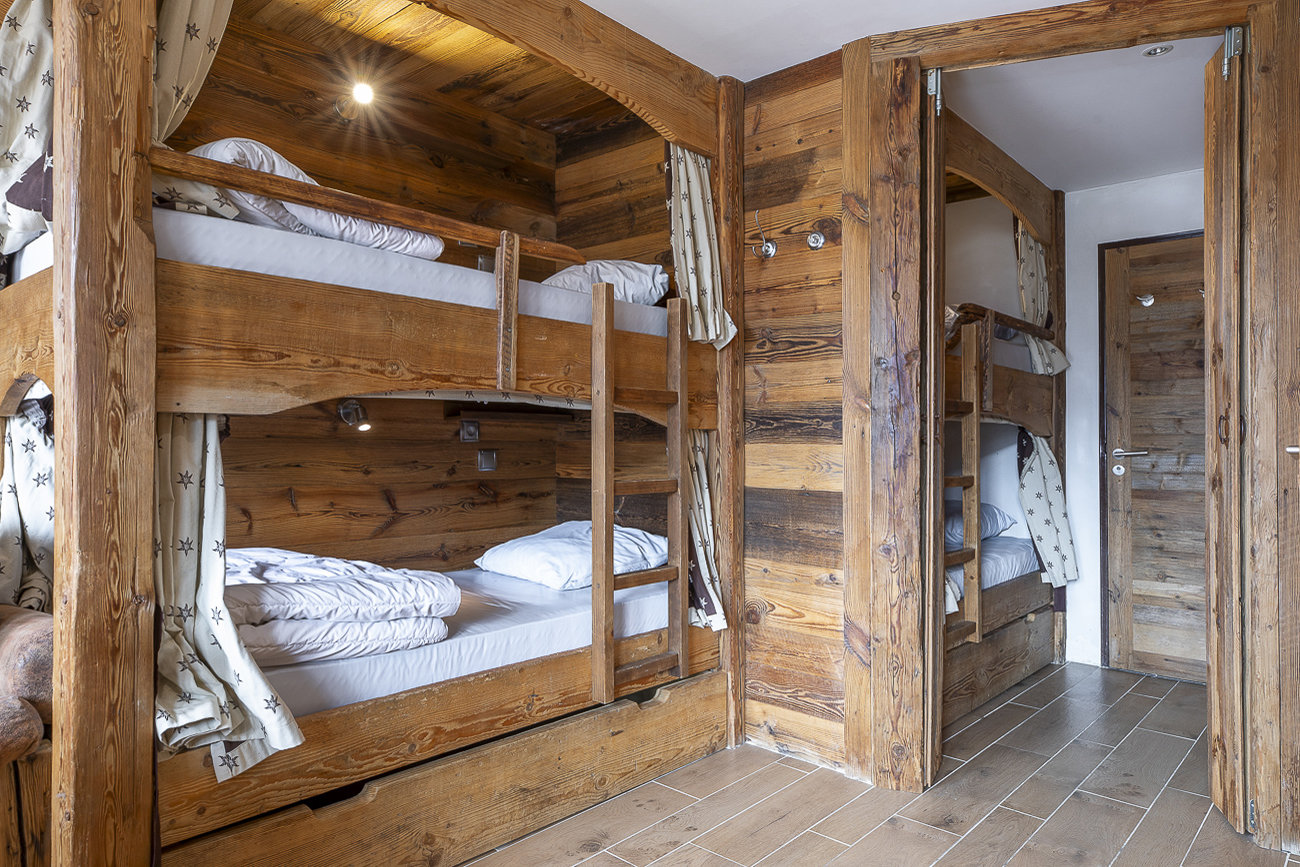 - In the entrance hall, a closed cabin with a double bunk bed (140x190cm), sleeping 4. Each bed has a TV.