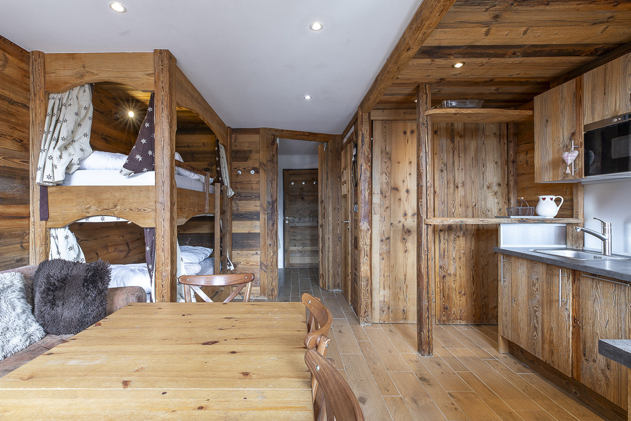 Located in the heart of the Avoriaz resort, on the 2nd floor of Les Fontaines Blanches residence, this wood-panelled apartment can accommodate up to 6 people.
