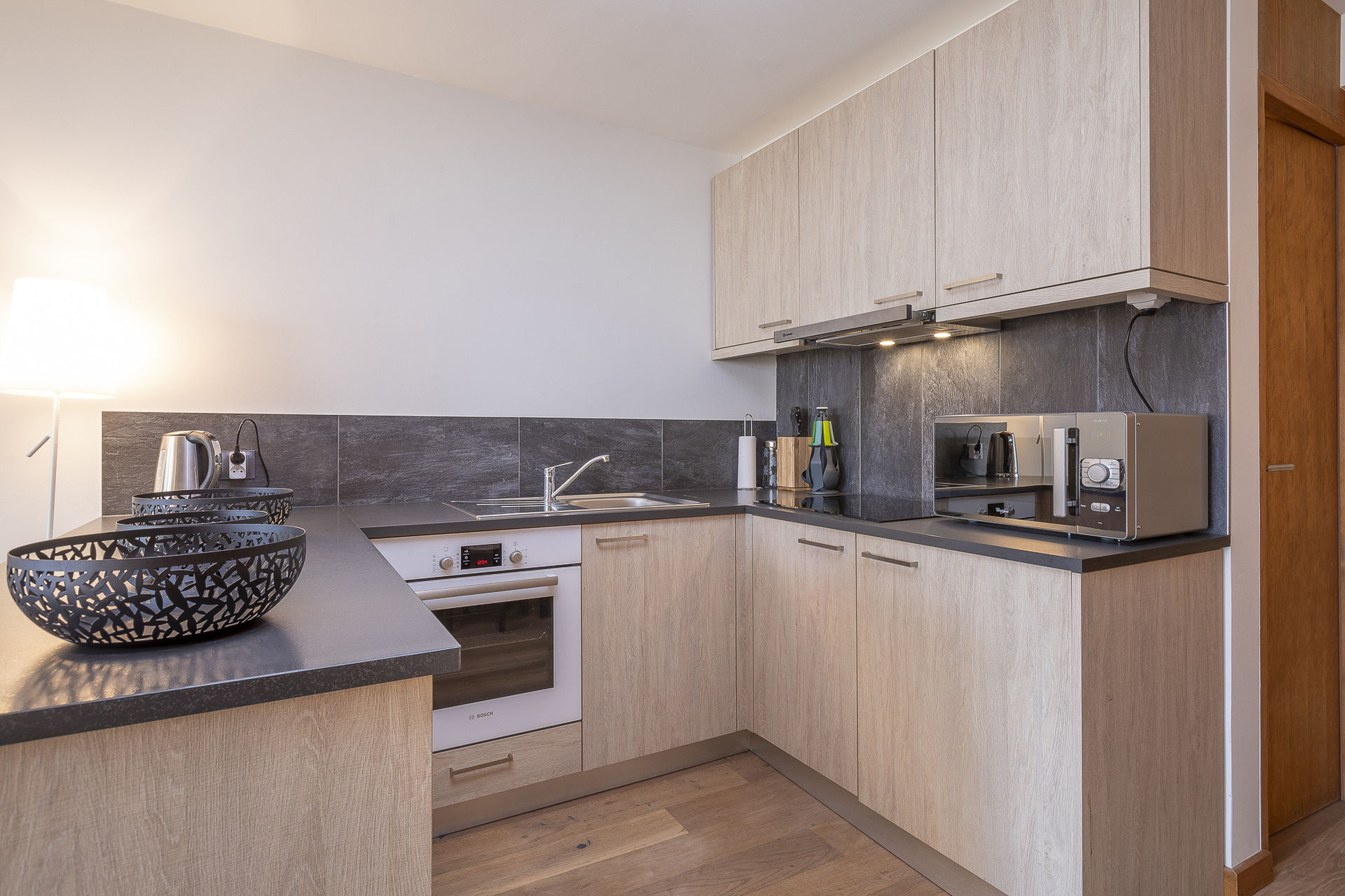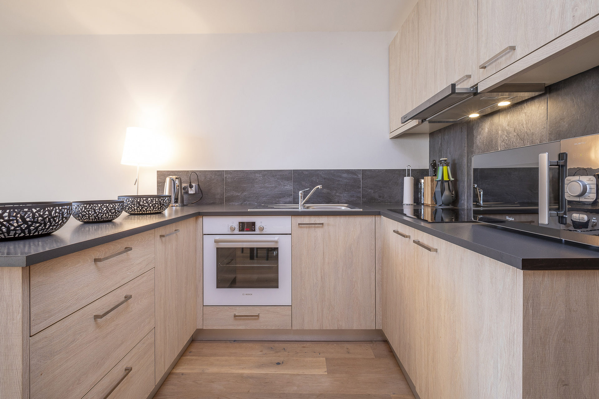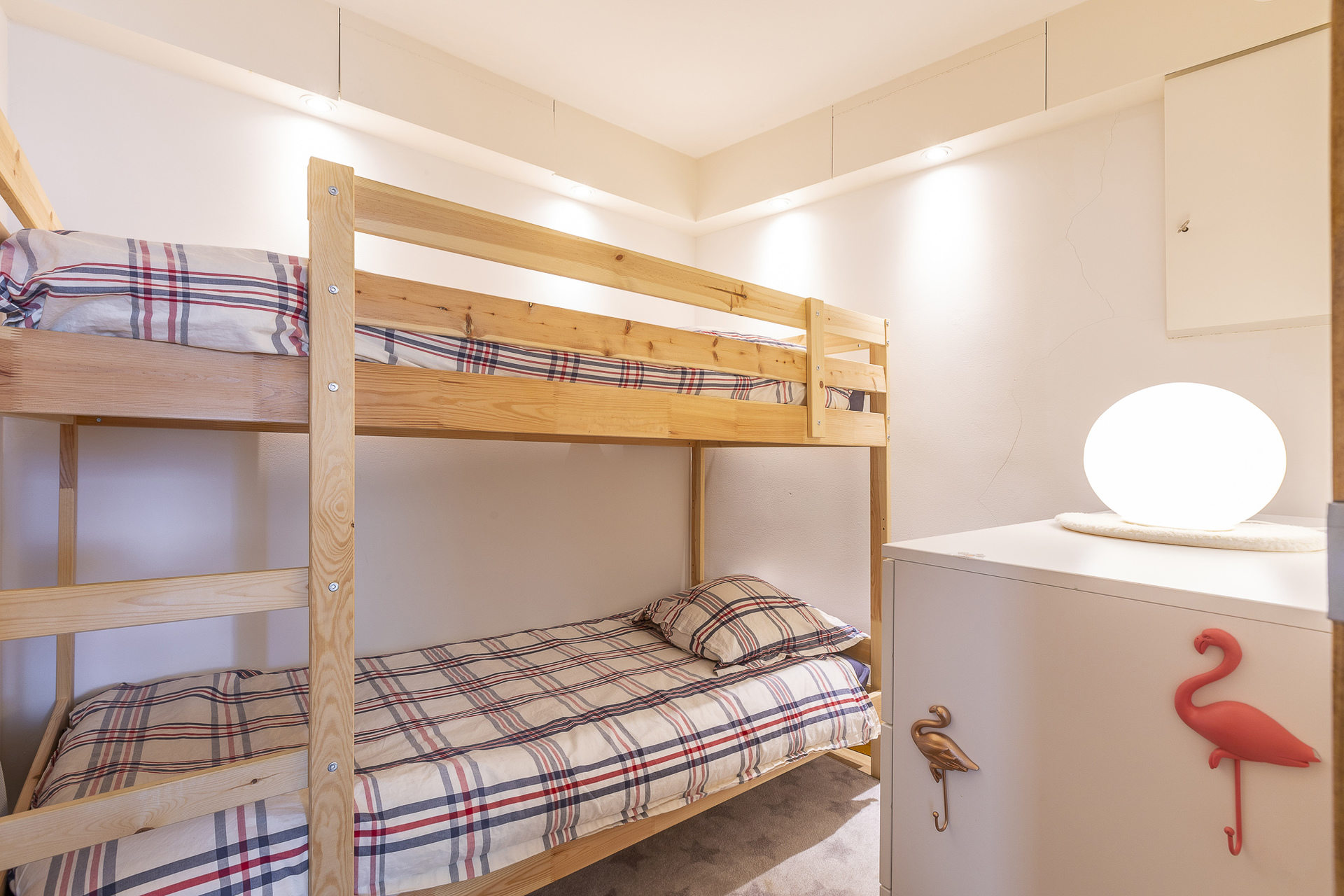 This apartment is ideal for 4 people and consists of one bedroom with bunk beds (90 x 190) and one bedroom with a double bed (140 x 200).