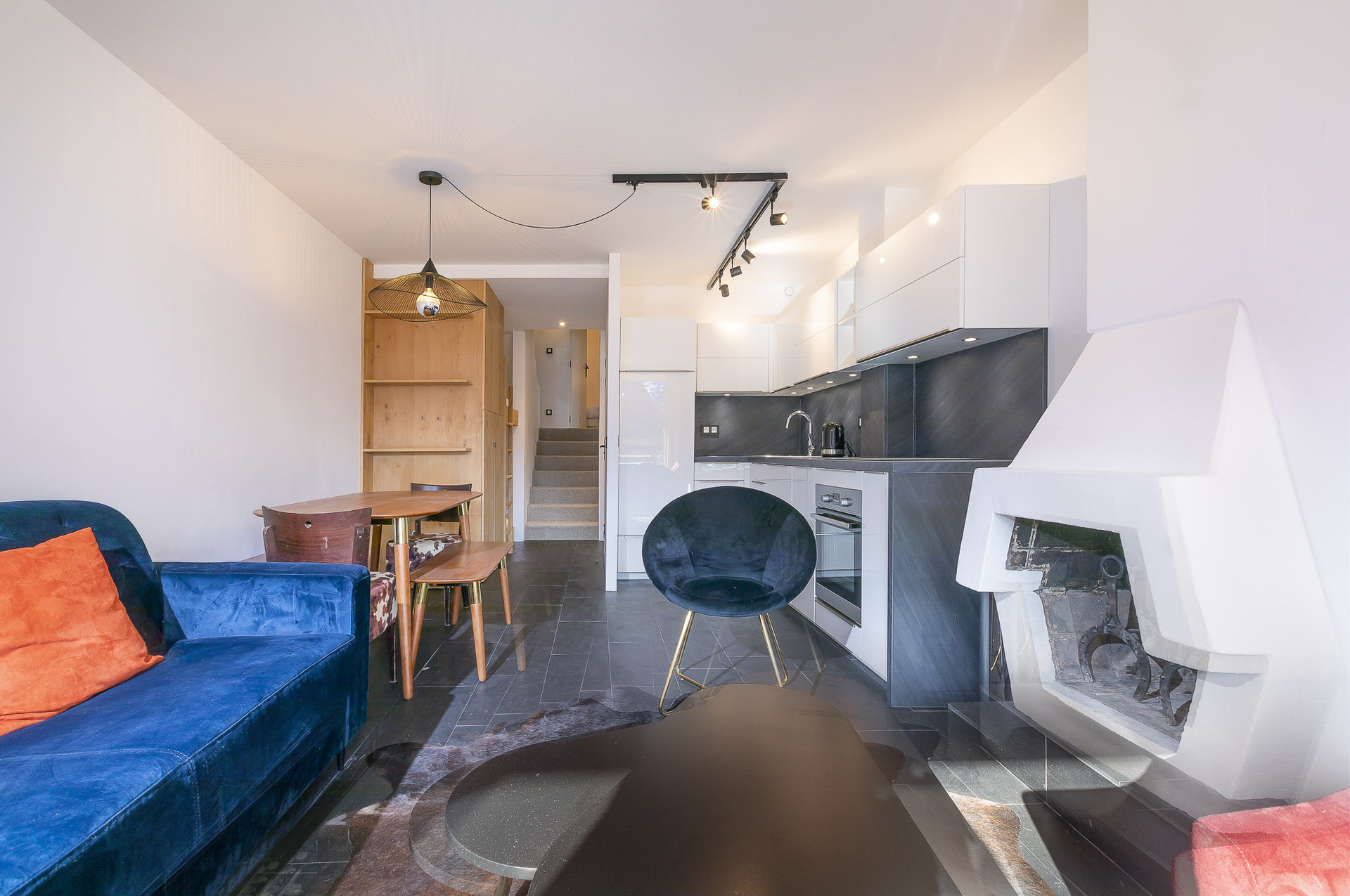 The lounge features a spacious open-plan kitchen (oven, microwave, induction hob, fridge, dishwasher, and filter coffee machine), as well as a convivial dining area and a comfortable seating space. Decorative fireplace (no fire allowed).